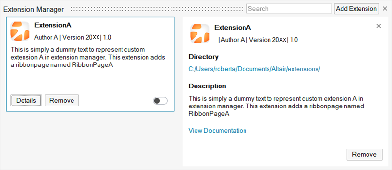 By default, the extensions are automatically detected when saved to <username>/Documents/Altair/extensions/, but you can also add other search paths.
