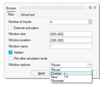 Scope blocks have a Window options parameter. Select