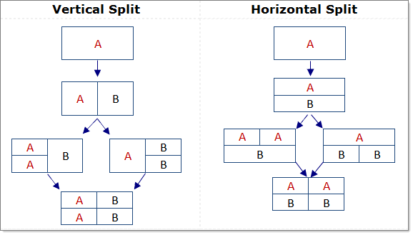 3. Click window B to make it active, right-click, and then from the context menu, select Split Window.