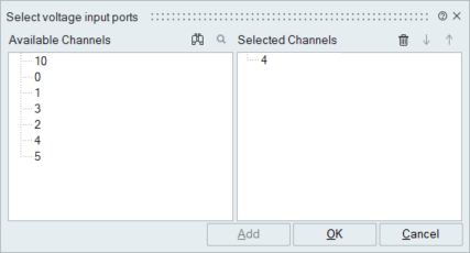 Enter the voltage output ports as a list or select them through the dialog.