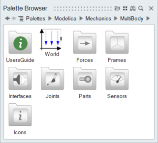 - The Modelica Standard Library includes a dedicated palette of multibody blocks.