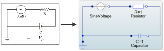 The process of modeling dynamic systems includes assembling blocks that exchange data through a network of input and output ports. Though possible to model physical systems with the basic Twin Activate blocks, the process requires translating into explicit form the implicit equations that represent the behavior of the physical components. In addition, the resulting diagrams have an unconventional appearance compared to component-based diagrams as you can see in the following figure.