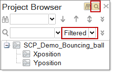 Select this search tool For this result All objects are displayed and the found objects are highlighted. To navigate through the objects, click the up or down arrows next to the search field. All found objects are displayed.