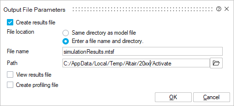- Same directory as model file. Select this option to save the file in the current model directory. The file is automatically named with the model name.