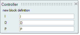 For the masked super block named, Controller, which contains a diagram of a PID controller, the following block dialog appears with the parameters I, D and P: