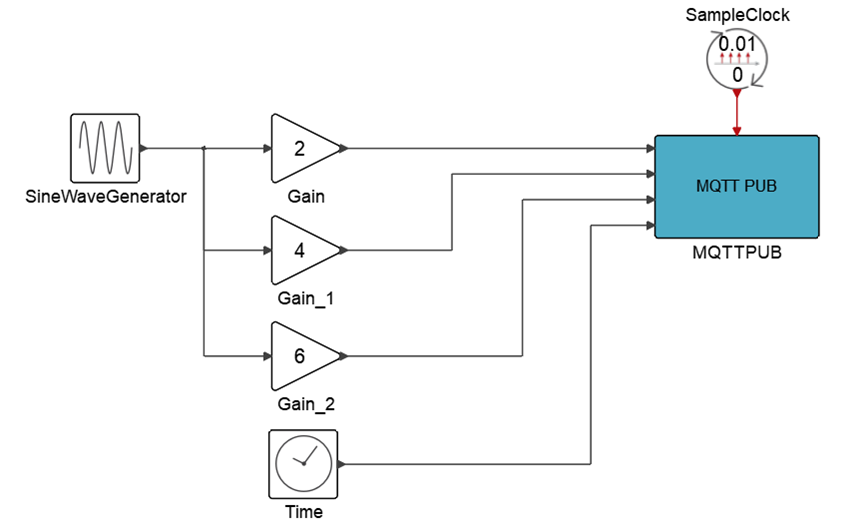 After doing the setup for the MQTT PUB block, connect some of the Signal