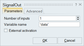 The SignalOut block is updated in the diagram. The new variable name appears, and the red activation port at the top of block is removed. The block now inherits activation. If an incoming signal is present, the SignalOut block is activated.