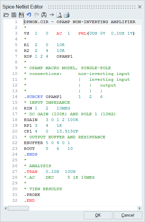 Copy the code from the OP_NON.cir file and paste it into