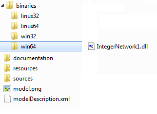 - C source file or compiled C dynamic linked libraries: These files define the model equations converted into causal form. If the source code is provided, the source code is put in the fmu://sources folder. If the model is provided in binary form, it is placed inside the folder fmu://binaries/win64. Binaries for several platforms, such as win32, linux32, and linux64, can be provided by an FMU.