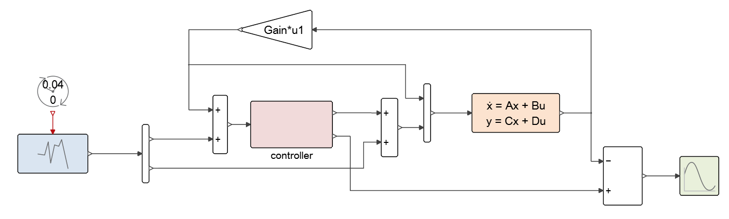 Figure 20. Controller Model after Super Block Creation (SFM_controller.scm). - If the super block contains input ports, inside the super block, click on the Input blocks and select the Time dependency check box and fill the input dimensions with the correct values, as shown in Figure 21. Otherwise, an FMU with only discrete-time variables will be generated and the size of input ports will be one.