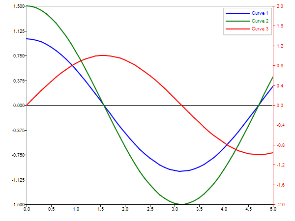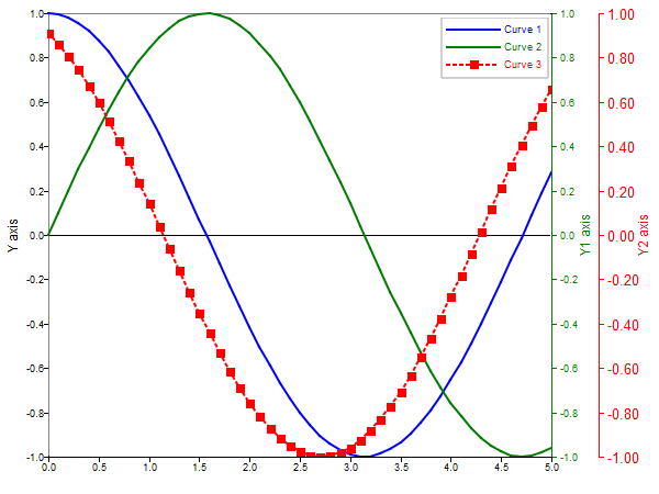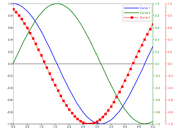 The vertical axis color is the same as the color of the first curve plotted on it.