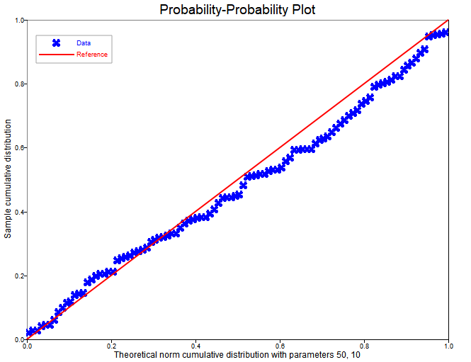 ppplot(data, 'norm', 50, 10);