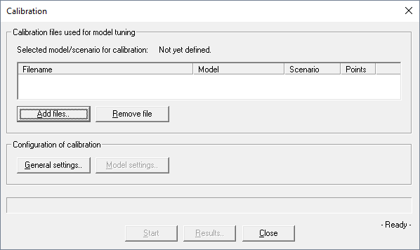 The calibration tool can be started from the Computation menu (). The calibration files generated during the wave propagation prediction have to be added to the list.