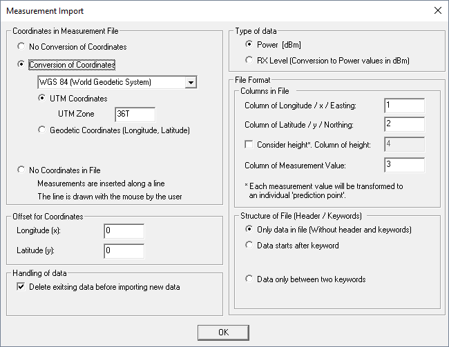 For example, if multiple measurement points fall in the same ProMan pixel and the those measurement values are -68 dBm and -72 dBm, the mean value of -70 dBm will be considered and saved in the file with the imported measurements.