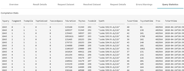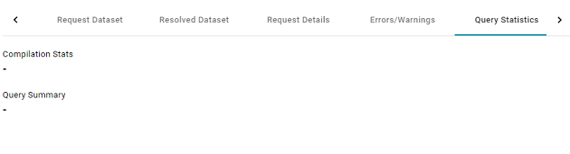 In addition, the images below show a comparison between the Query Statistics tab when Enable Detailed Query Timing is disabled versus enabled. When the setting is disabled, the Compilation Stats and Query Summary tables are empty: