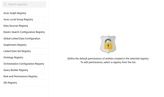 The Role and Permissions Registry is a system graph that stores metadata about roles and permissions. Roles are not treated like other artifacts in Anzo. Unlike a data source, model, or graphmart artifact, for example, the permissions for a single role or subset of roles cannot be configured separately. Access to create and edit roles is controlled by the Manage Users, Groups, and Roles permission. For more information, see Role Permissions and Registries.