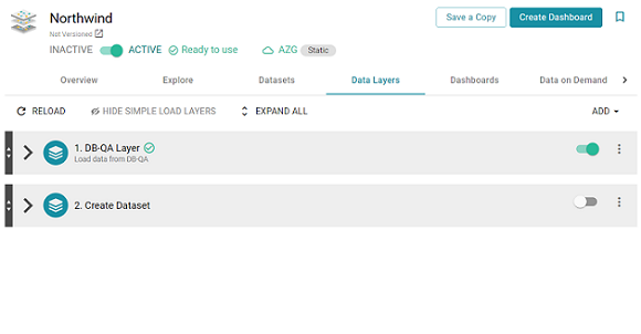 - Click the Data Layers tab. Anzo displays the existing data layers. For example: