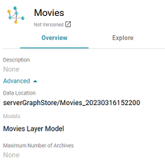 3. Click the Overview tab. Under the Description field, click Advanced to display the advanced options. For example: