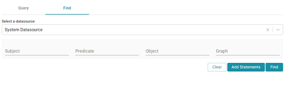 2. Next, open the Find tab in the Query Builder. In the Anzo application, expand the Access menu and click Query Builder. Then click the Find tab. The Find screen opens and the System Datasource is selected as the target data source.