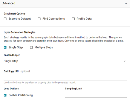 This topic describes the Advanced options that are available when you create or configure the Direct Data Load workflow to load a data source via auto-generated data layers.