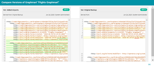 ) in the Actions column, you can click the icon to open a side-by-side comparison of the TriG files for the two versions. For example: