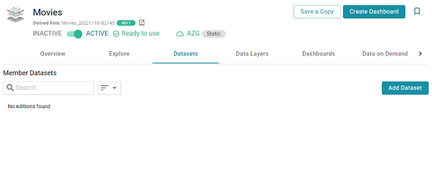 - By default the current working edition (Managed Edition) of the dataset is selected. If you want to select a different edition, follow these steps: