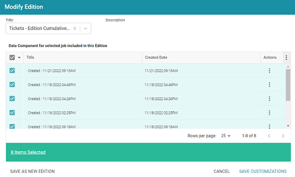 - If you want to make changes to the selected edition, select (to include) or clear (to exclude) the data component checkboxes on the left side of the screen.