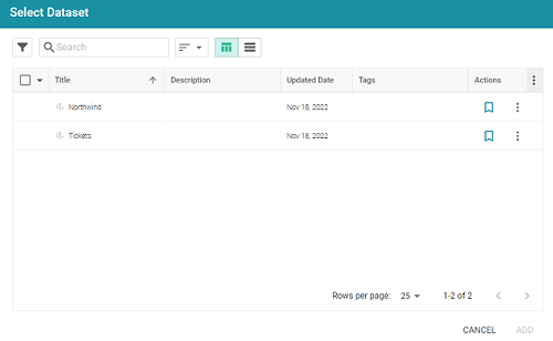 - Click the Add Dataset button. The Select Dataset dialog box is displayed.