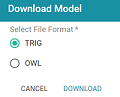 - In the Download Model dialog box, select the format to save the model in. By default Anzo saves models in TRIG format. If you want to save the file in OWL format, select the OWL radio button. Then click Download.