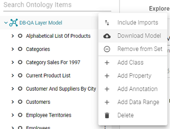 - In the Anzo application, click Model. Anzo displays the Manage Data Model Working Set screen. For example: