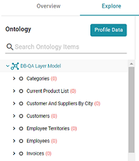 Unless you enable Generate Metrics, when you view in the Datasets catalog a dataset that was created by an Export Step, the counts in the Ontology panel on the Explore tab remain 0 until a Data Profile is generated for the dataset. For information about generating a profile, see Generating a Dataset Data Profile. For example, the image below shows the Explore tab for a dataset that was created by an Export Step and has not been profiled.