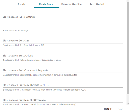 | Elasticsearch Bulk Max FLDS Threads | The maximum number of FLDSes to index concurrently. |