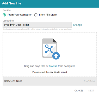 - Click the Add New File button. Anzo displays the Add New File dialog box, and the Source is set to From Your Computer.