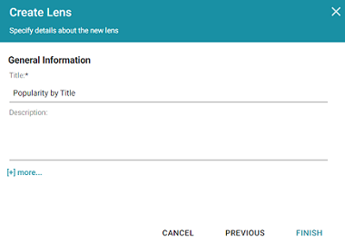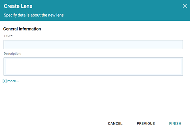 - In the Hi-Res Analytics main toolbar, click Lenses and select New. The Create Lens dialog box opens.