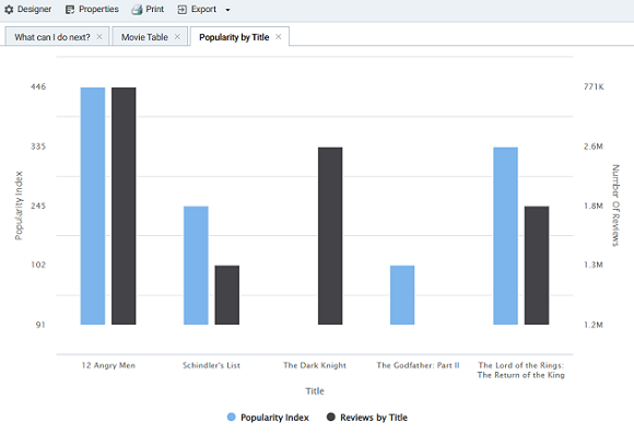- If you want to add more data to the Chart, such as to compare Popularity versus Reviews for each Title, follow these steps: