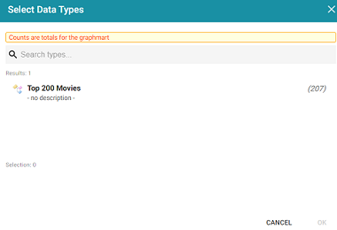 - Click Top 200 Movies to select it, and then click OK to add the data type to the dashboard. The selected type is added to the Data Types panel.