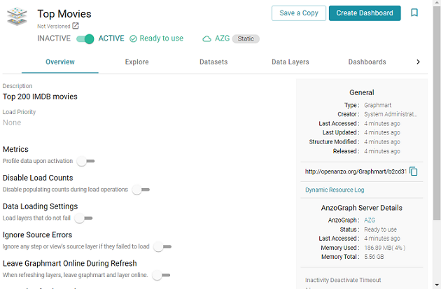 - Click Create Graphmart. The new Graphmart is created and activated.