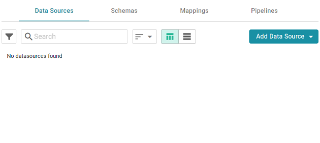 - In the Anzo application, expand the Onboard menu and click Structured Data. Anzo displays the Data Sources screen, which lists any existing data sources: